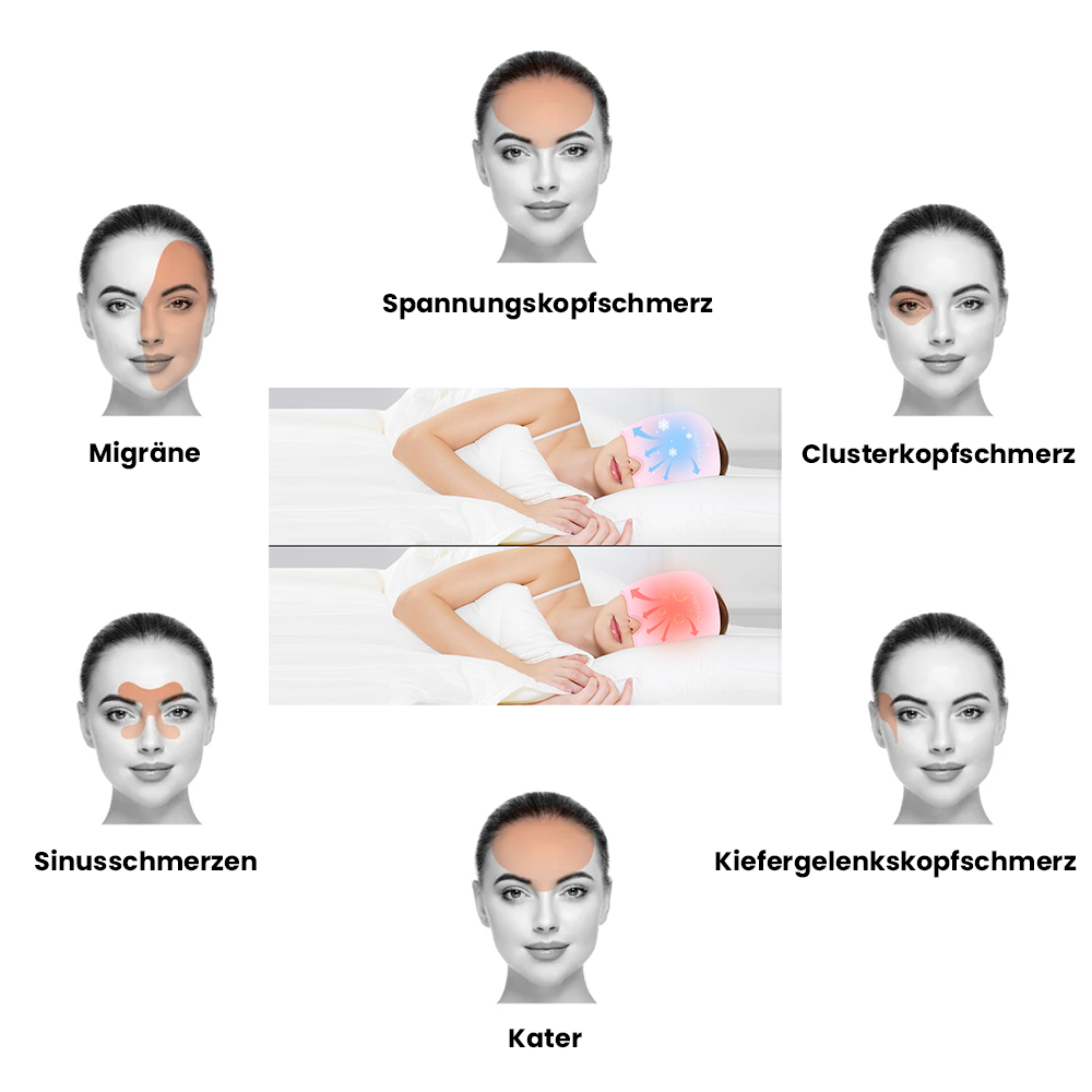 Ja, sie übt einen leichten Druck aus und spendet gezielte Kälte oder Wärme, um Schmerzen durch Migräne, Kopfschmerzen, Sinusitis oder Muskelverspannungen zu lindern.